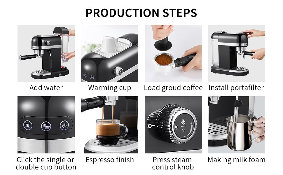 Home > 20 Bar Espresso Machine, 1350W High Performance and 1.4 L Detachable Transparent Water Tank