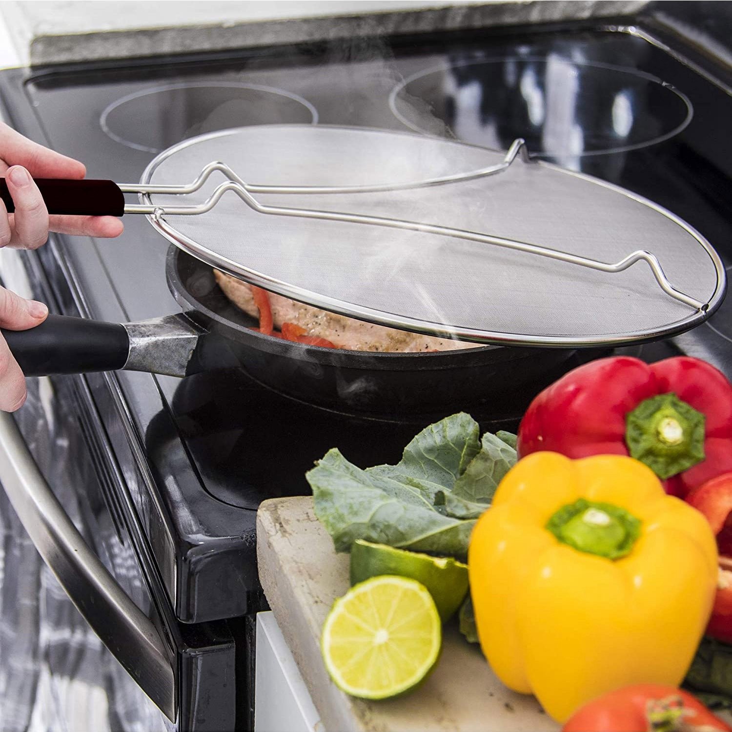 Grease Splatter Screen 13in Stainless Steel Fine Mesh Splash Mesh Shield Hot Oil Stopper