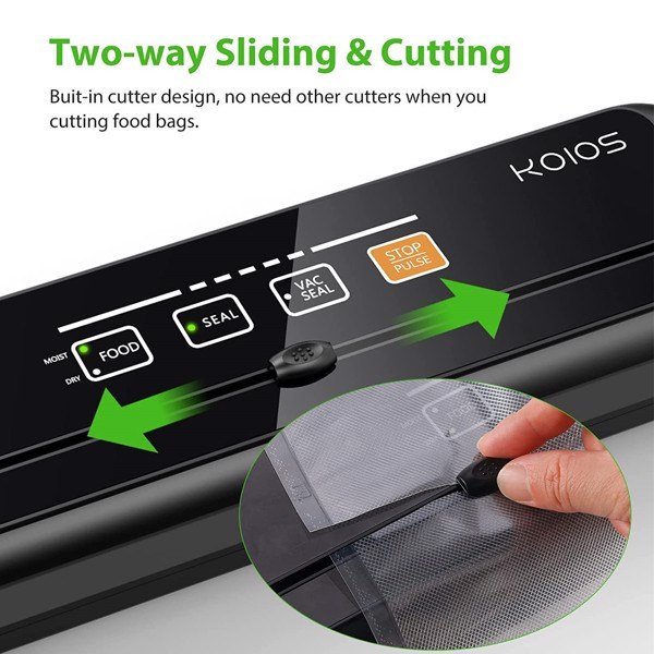 The KOIOS vacuum sealing machine comes with a sliding cutter. If the food bag is too large, you could get a smoother customized bag by just cutting it. No other cutters are needed, it is safe and covenient, what a wonderful design!