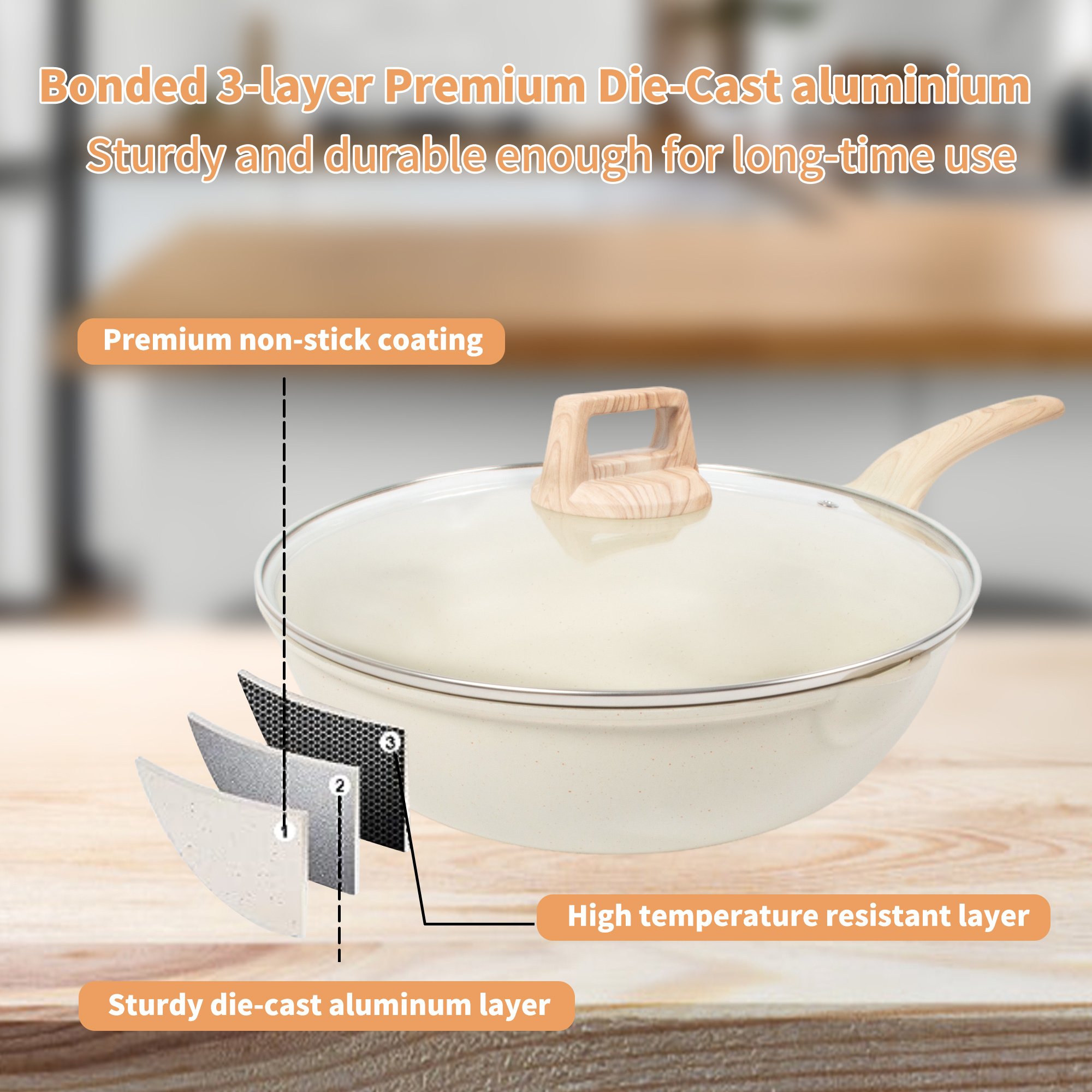 Excellent Non Stick PerformanceMade from granite materials, our pots inside texture is smooth, releases food effortless and ensures excellent non stick performance. Cooking with low consistent heat is the key to success for long-lasting nonstick.