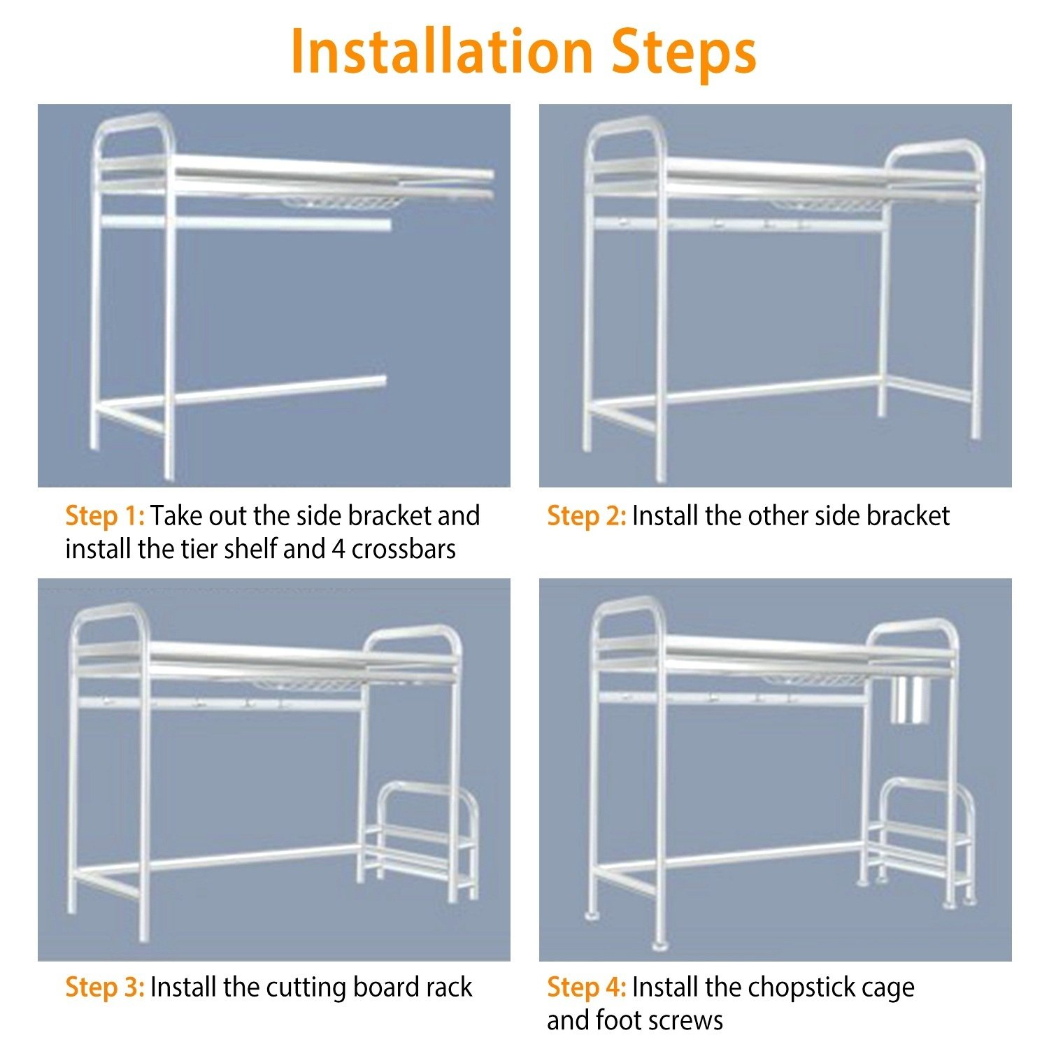 Home > Over Sink Dish Drying Rack Shelf Stainless Steel Kitchen Countertop Bowl Dish Chopping Board Organizer Rack