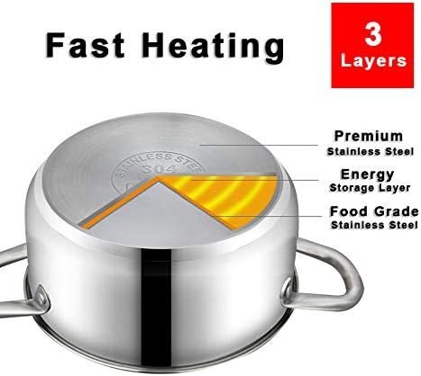 Made with 304 food grade stainless steel; which is perfect for corrosion resistance. The stainless steel cooking surface will not discolor; react with food or alter flavors. Great for classic cooking techniques like slow simmers; rolling boils and reduction of liquids.