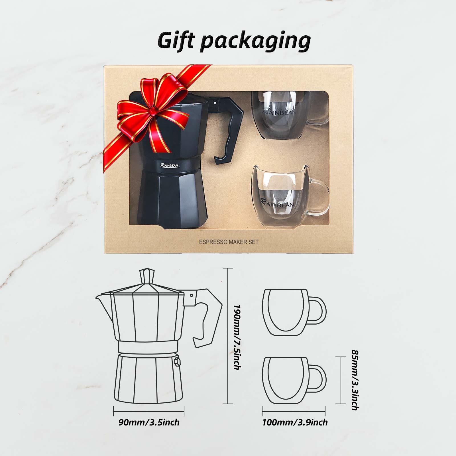 1.RAINBEAN moka pot can produces 6 demitasse cups of rich, authentic Italian espresso in just 3-4 minutes.